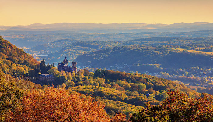 Wenn ihr in Bonn ein Wohnmobil mietet und rund 15 Kilometer nach Süden fahrt, findet ihr auf der östlichen Flussseite den Drachenfels samt der Drachenburg. Der Sage nach soll hier Siegfried gegen den Drachen gekämpft haben, tatsächlich entstand die Burg erst im späten 19. Jahrhundert. Eindrucksvoll ist sie aber allemal – ebenso wie der Panoramablick vom Drachenfels aus.
